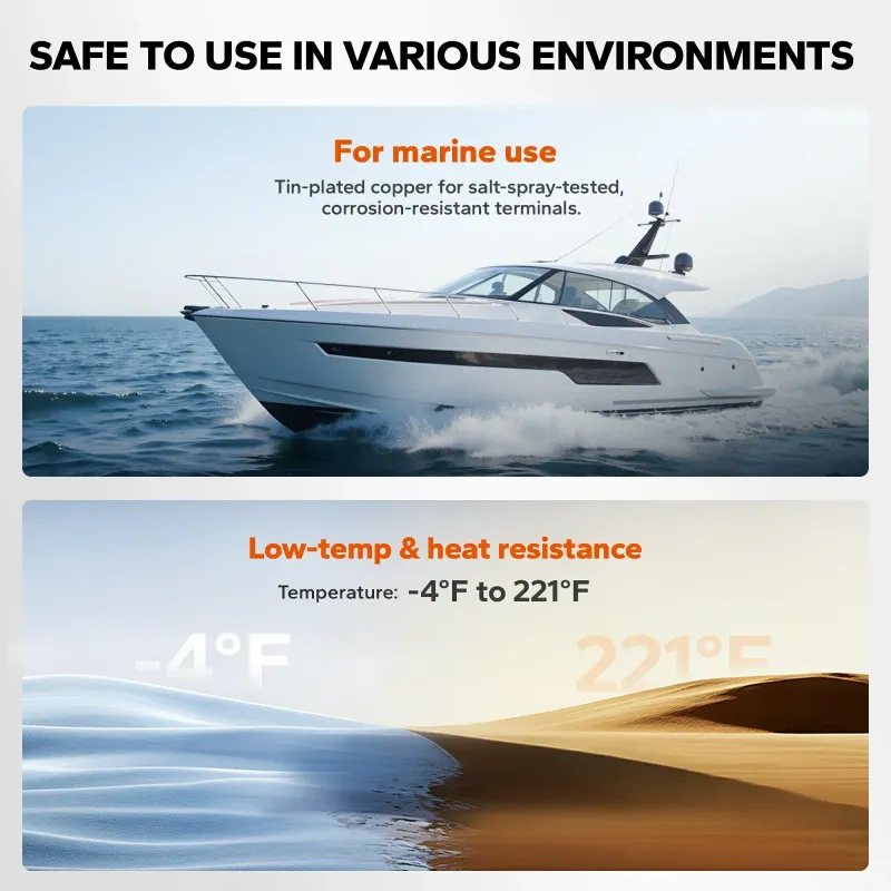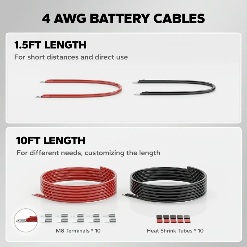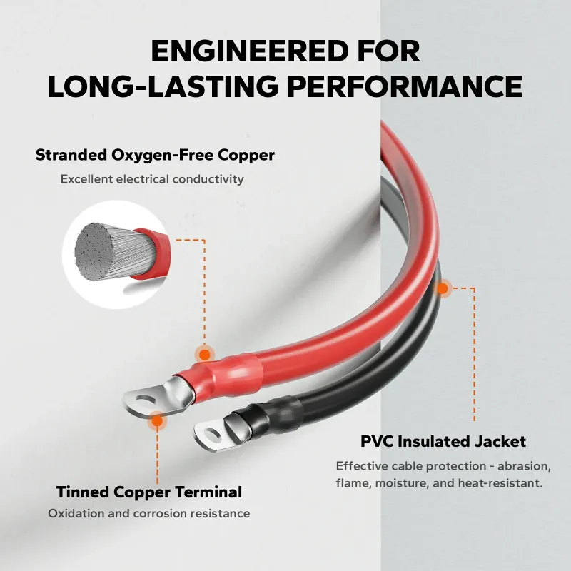 - Heavy Duty 4AWG Gauge: Supports 150A continuous current with low resistance for efficient power delivery without overheating.