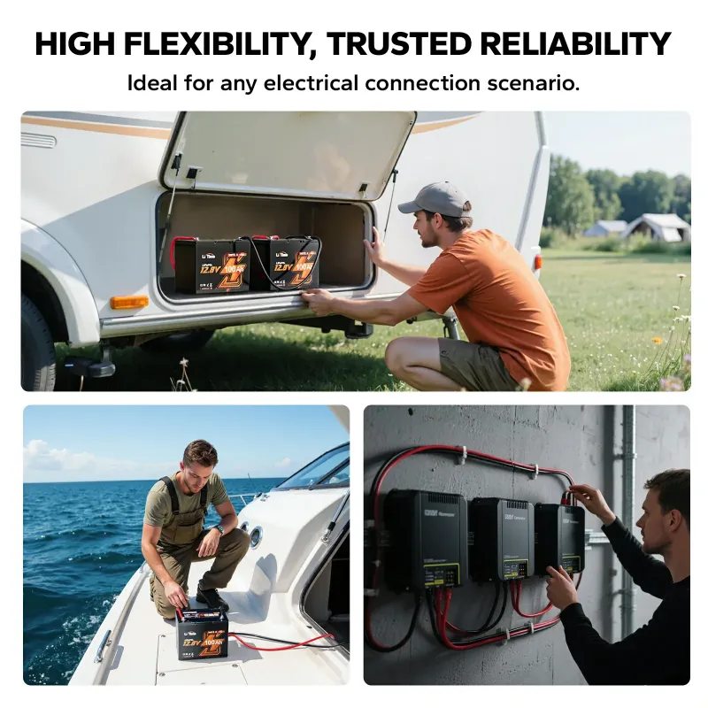 Pair this cable set with our premium LiFePO4 batteries, bus bars, and fuses for a complete, high-efficiency power ecosystem. Whether connecting RV batteries, solar banks, or marine setups, the LiTime 4AWG Cable Set delivers unmatched reliability and peace of mind. Order now and experience LiTime’s innovative electrical accessories—stocked and ready to ship from lithiumion-batteries.com!