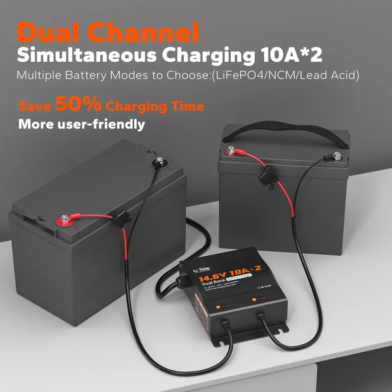 Product Description for LiTime 2 Bank 12V 10A Battery Charger