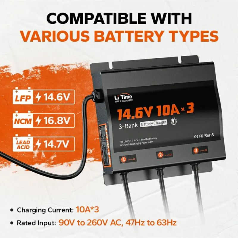 - Charger Type: LiFePO4/NCM/Lead Acid Dedicated (3 Bank).