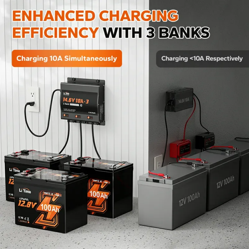 Pair this charger with our premium LiFePO4 batteries for a complete, high-efficiency charging ecosystem. Whether maintaining RV power, marine setups, or off-grid systems, the LiTime 3 Bank 12V 10A charger delivers unmatched reliability and peace of mind. Order now and experience LiTime’s innovative charging technology—stocked and ready to ship from lithiumion-batteries.com!