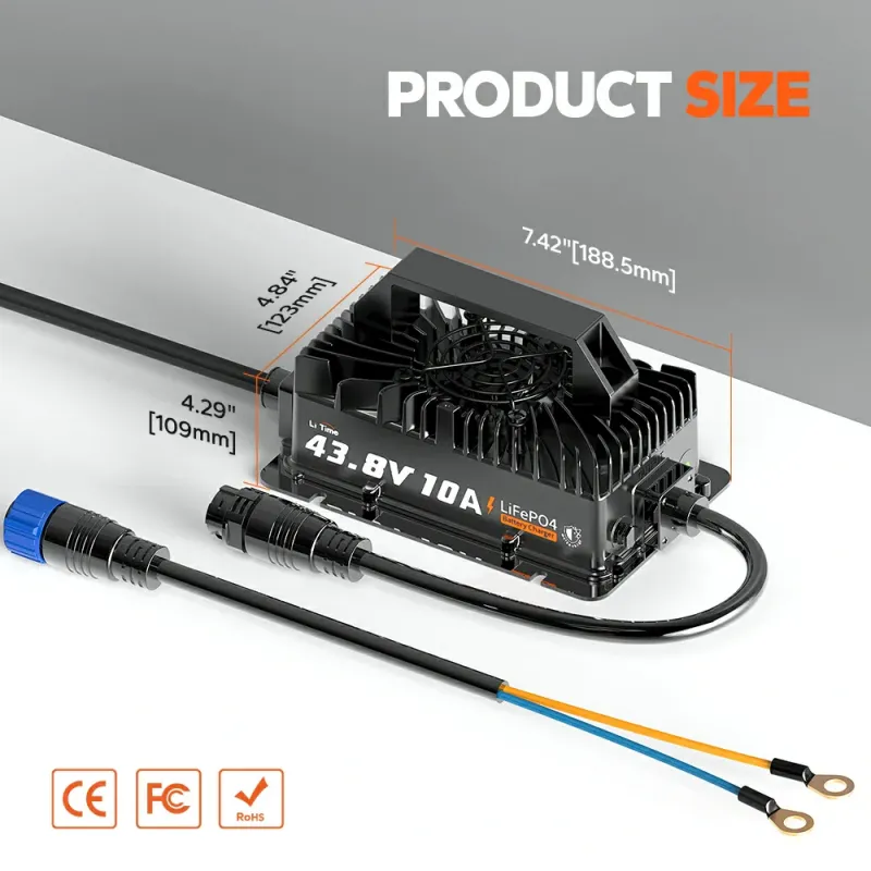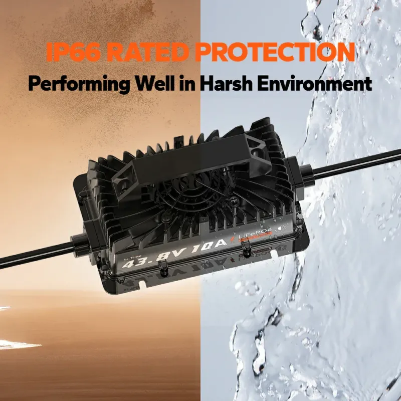 LiTime 36V (43.8V) 10A IP65 Waterproof LiFePO4 Smart Lithium Battery Charger – Efficient 3-Stage Charging Solution for Golf Carts, Electric Vehicles, RV, Trolling Motors, and Off-Grid Systems