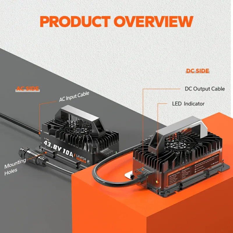 Product Description for LiTime 36V (43.8V) 10A Lithium Golf Cart Waterproof Battery Charger