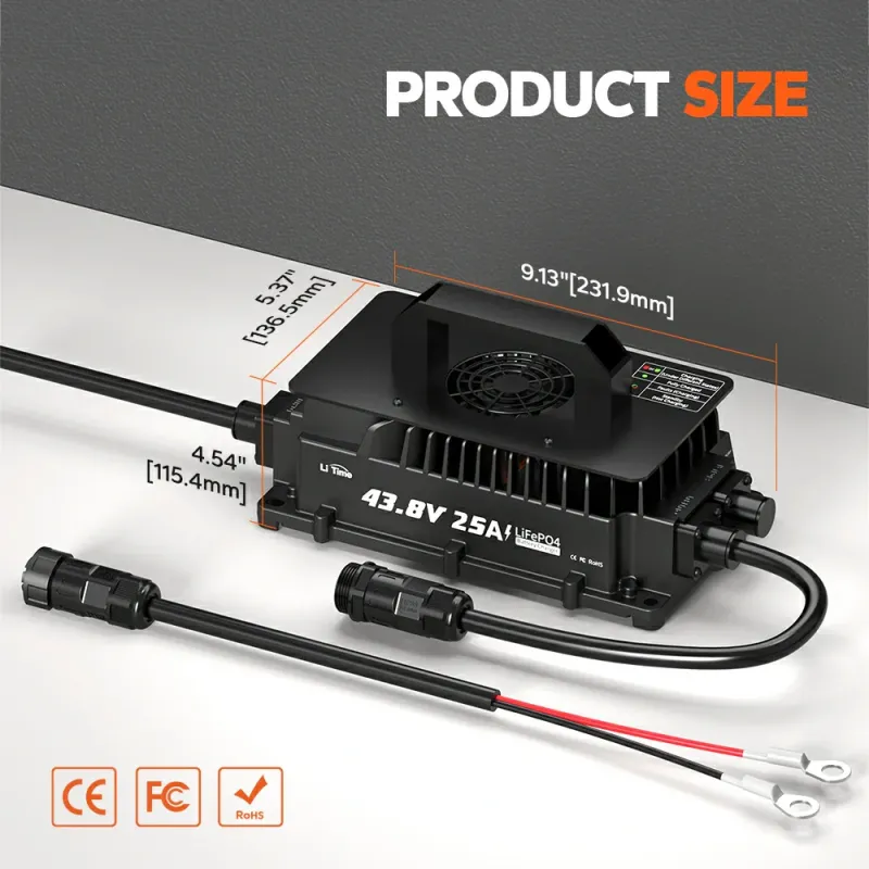 Product Description for LiTime 36V (43.8V) 25A Lithium Golf Cart Waterproof Battery Charger