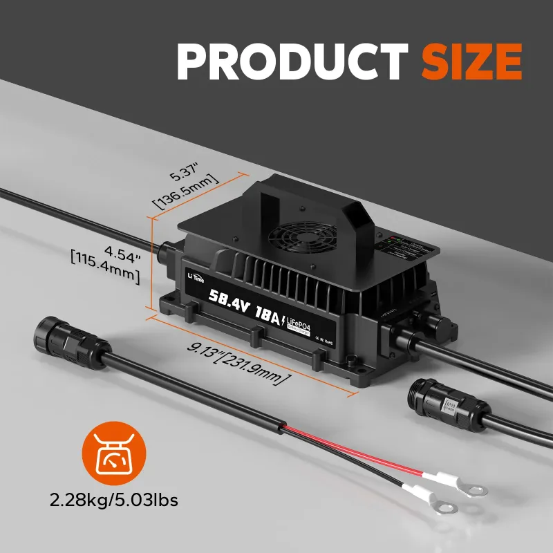 Product Description for LiTime 48V (58.4V) 18A LiFePO4 Battery Charger IP65 Waterproof
