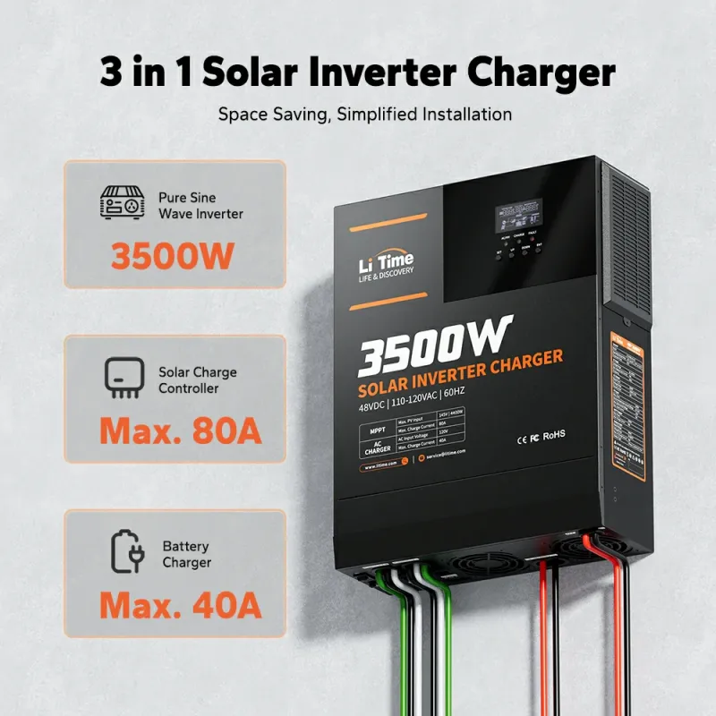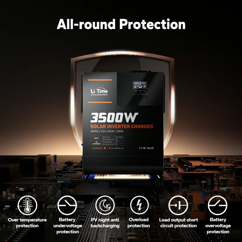LiTime 48V 3500W All-in-One Pure Sine Wave Solar Inverter Charger – Intelligent 3-in-1 Power Solution for Home Energy Storage, Off-Grid Solar, RV, Marine, and Backup Systems