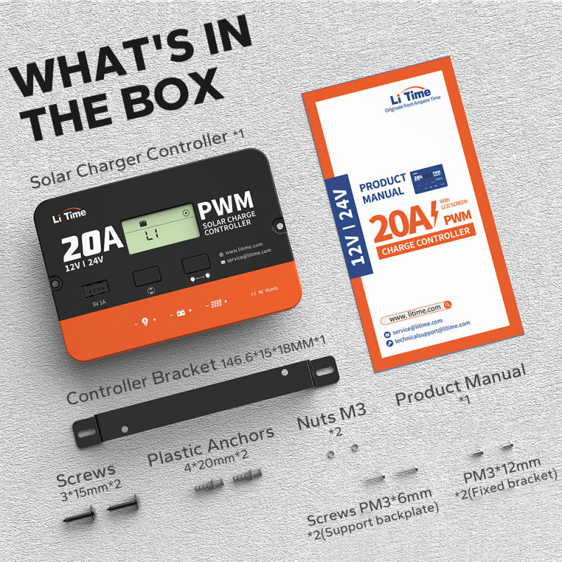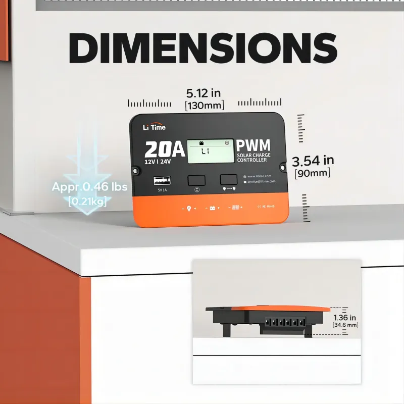 Pair this controller with our premium LiFePO4 batteries and solar panels for a complete, high-efficiency solar ecosystem. Whether for RV boondocking, marine charging, or off-grid setups, the LiTime 20A PWM controller delivers unmatched reliability and peace of mind. Order now and experience LiTime’s innovative solar technology—stocked and ready to ship from lithiumion-batteries.com!