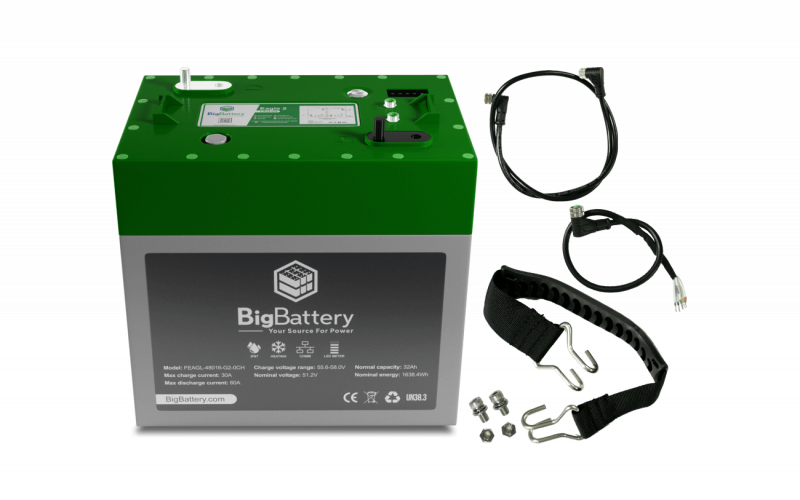 The BigBattery 48V 2X Eagle 2 Kit doubles your power with two 1.63kWh (32Ah) industrial-grade LiFePO4 batteries. This rugged, high-performance kit is built for demanding 48V applications like golf carts, utility vehicles, UTVs, electric vehicles, marine systems, off-grid solar, trolling motors, or heavy-duty backup power.