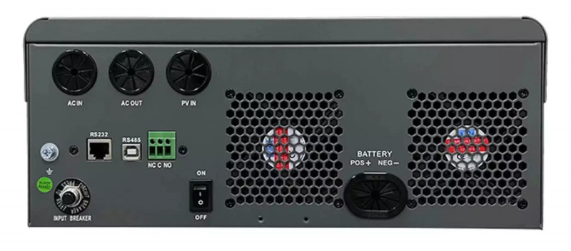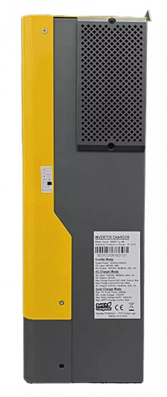 Key Features • 3000W Continuous Output – Pure sine wave with high surge for appliances like refrigerators, microwaves, CPAP machines, and power tools. • 5000W PV Input – High-voltage MPPT supports large solar arrays for maximum renewable charging. • 500 VOC Max – Allows longer PV strings for efficient wiring and reduced losses. • Hybrid Functionality – Off-grid or backup modes with automatic transfer switch. • 48V Battery Input – Compatible with lithium (LiFePO4), AGM, gel, or flooded batteries. • Built-in Protections – Overload, over-temperature, short-circuit, low-battery, and reverse polarity safeguards. • Advanced Monitoring – LCD display and optional app/Wi-Fi for real-time system status. • Rugged & Reliable – Durable construction for indoor/outdoor use with cooling fans.