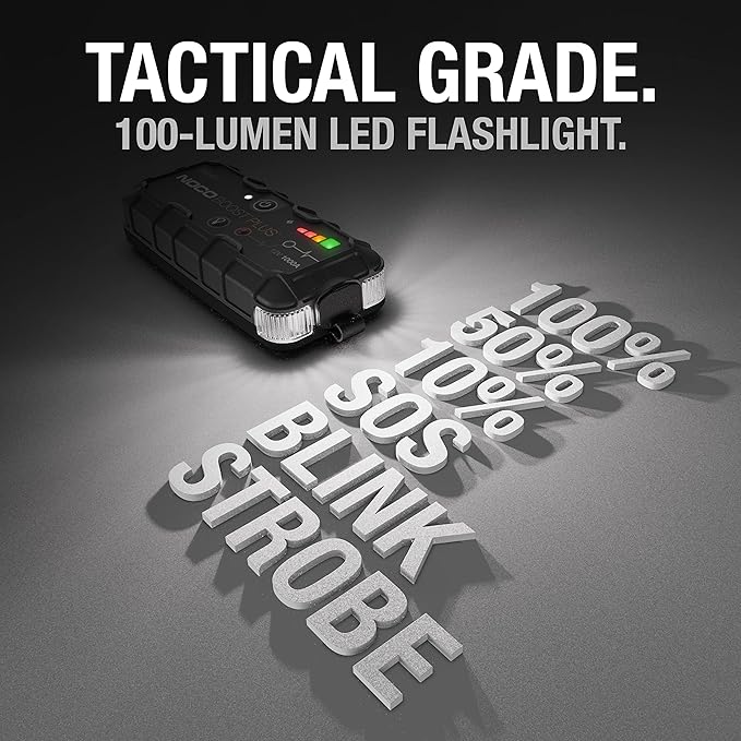 NOCO GB40 1000A 12V Boost Plus UltraSafe Jump Starter – Heavy-Duty, Safe, and Versatile Emergency Power Solution for Vehicles, RVs, and More Revive even the toughest vehicles with the NOCO GB40 1000A 12V Boost Plus UltraSafe Jump Starter (Model: GB40), a rugged, lithium-ion-powered jump starter built for demanding roadside rescues. Ideal for cars, trucks, SUVs, motorcycles, ATVs, boats, and RVs, this compact unit delivers 1000A peak current to jump-start gas engines up to 8L and diesel engines up to 6L, even in extreme weather. Featuring UltraSafe 2.0 technology, it eliminates common hazards while serving as a multi-function power bank and flashlight for ultimate preparedness.