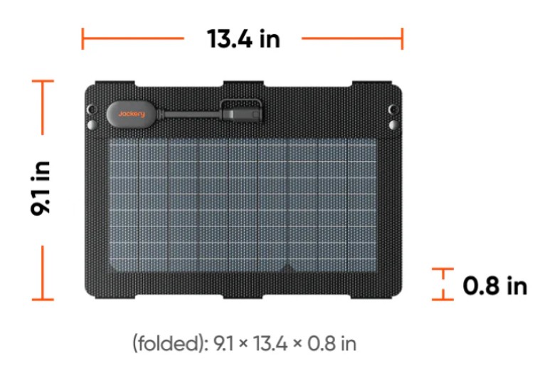 Key Features • Compact 288Wh LiFePO4 Battery – 3000+ cycles to 80% capacity for long-term reliability. • 300W Output – Pure sine wave with 600W surge, powers phones, laptops, mini fridges, lights, and small fans. • SolarSaga 40W Air Solar Panel – Ultra-light (book-sized), high-efficiency foldable design, direct USB-A/USB-C outputs for device charging. • Fast Charging – Full charge in ~4.5 hours with the included 40W panel or quicker via wall outlet. • Multiple Ports – 1x AC outlet, 1x USB-A, 2x USB-C (100W PD + 15W), 1x car port for versatile device charging. • Built-in LED Light – Adjustable brightness with SOS mode for emergencies. • Quiet & Safe – <30dB noise level, advanced BMS protections, no emissions. • Backpack-Friendly – Total kit under 11 lbs, fits easily in a backpack with foldable handle.