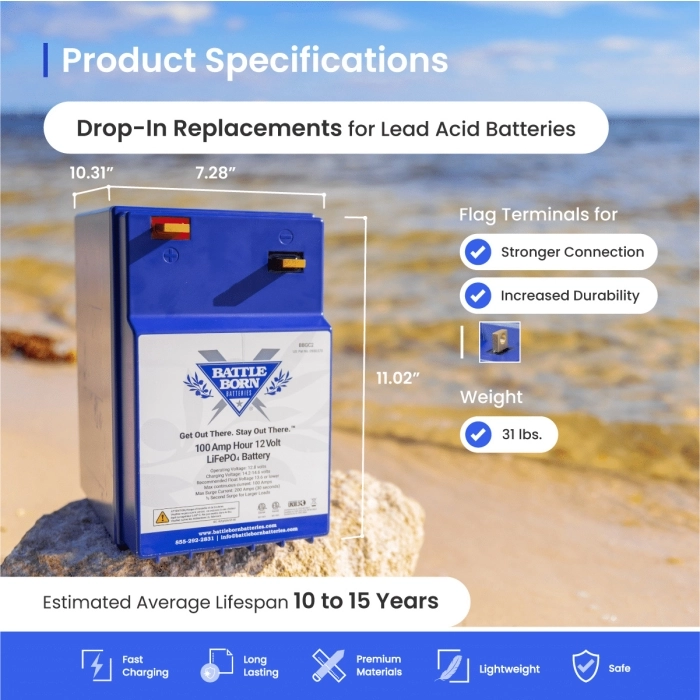 Product Description for Battle Born LiFePO4 Lithium Heated GC2 Battery - 12 Volt 100 Ah