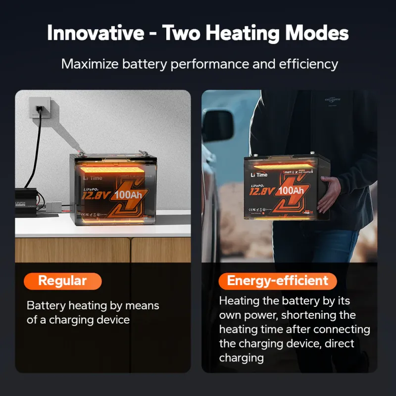 LiTime 12V 100Ah Group 24 LiFePO4 Bluetooth Self-Heating Deep Cycle Lithium Battery – Smart Cold-Weather Power Solution for Marine, Solar, RV, and Off-Grid Systems