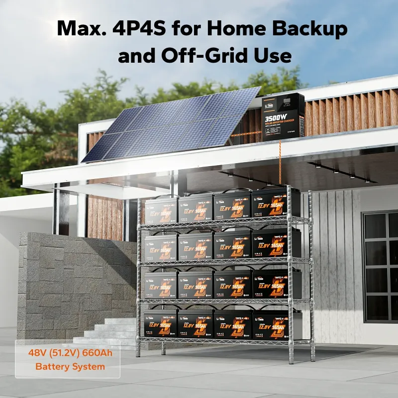 - Scalable & Compatible: Up to 4S4P configuration (20.48kWh max); pairs seamlessly with Victron, Renogy, and other inverters for expanded 12V systems.