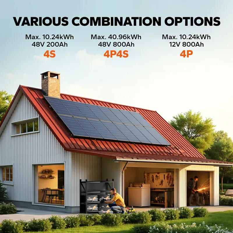 - Scalable & Compatible: Up to 4S4P configuration (40.96kWh max); pairs seamlessly with Victron, Renogy, and other inverters for expanded 12V systems.