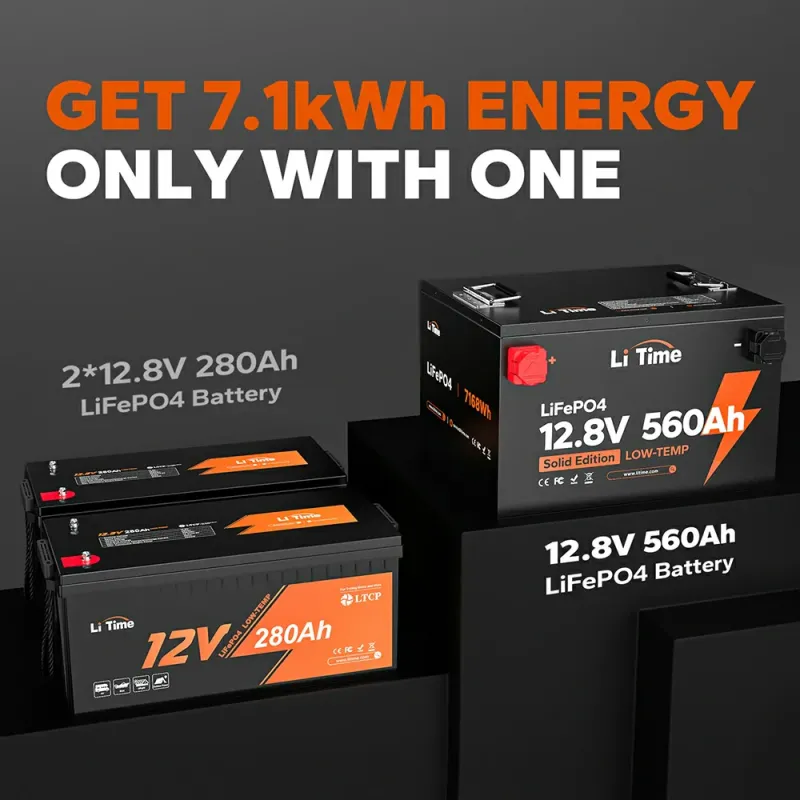 LiTime 12V 560Ah LiFePO4 Battery for Off Grid Solar System with Low Temp Protection