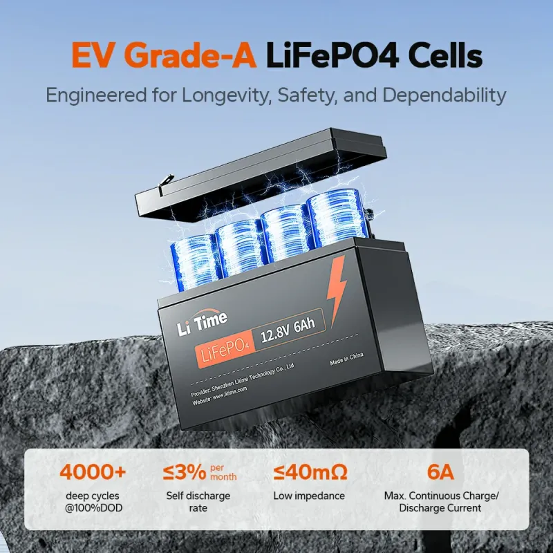 LiTime 12V 6Ah LiFePO4 Deep Cycle Lithium Battery – Compact & Portable Power Solution for Solar, RV, Marine, and Off-Grid Systems