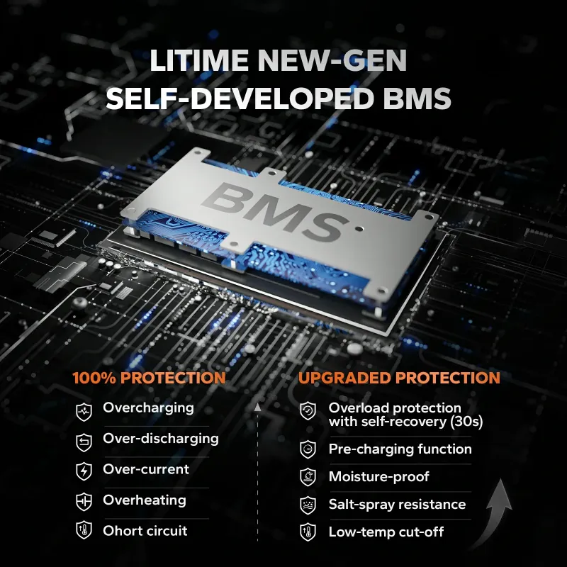 - Bluetooth 5.0 Monitoring: Real-time app tracking of SOC, voltage, power, temperature, and capacity for effortless battery management on the water.