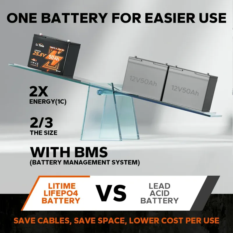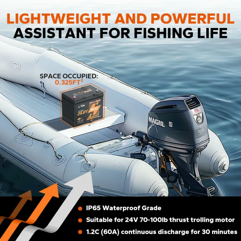 Pair this battery with our premium chargers and inverters for a complete, sustainable power ecosystem. Whether powering trolling motors on the lake, RV camping, or portable marine electronics, the LiTime 24V 50Ah TM delivers unmatched smart efficiency and peace of mind. Order now and experience LiTime’s innovative lithium technology—stocked and ready to ship from lithiumion-batteries.com!