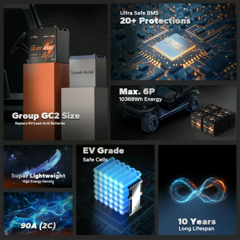 Product Description for LiTime 36V 45Ah GC2 Bluetooth Lithium Golf Cart Battery