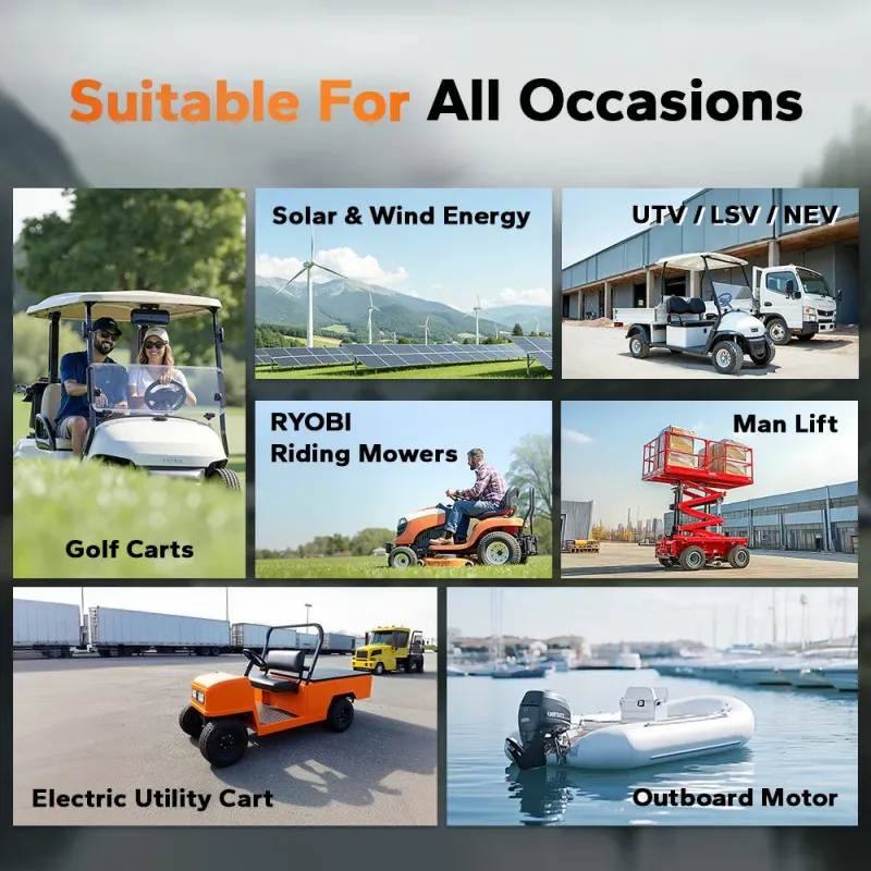 - High-Power Output: 80A continuous and 300A peak discharge, ideal for golf carts and high-drain devices without voltage drop.