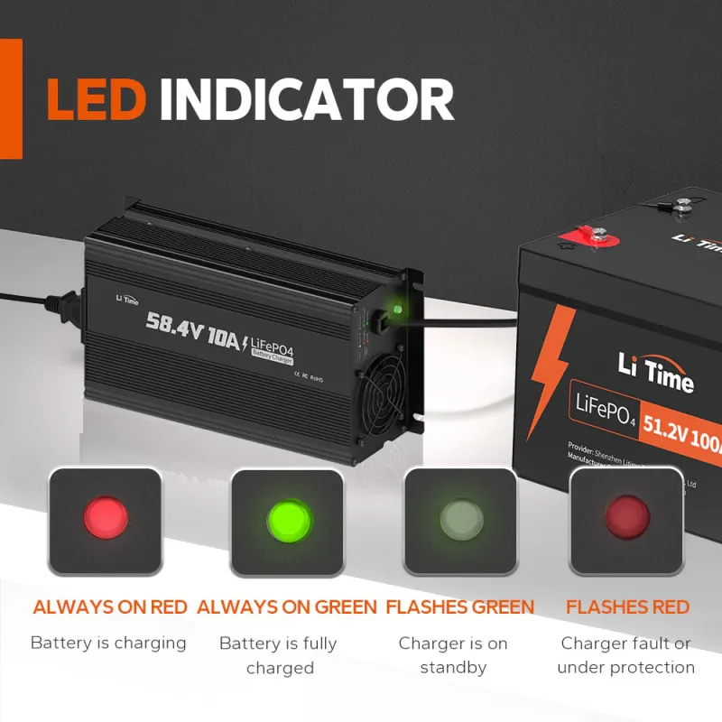 Product Description for LiTime 48V (58.4V) 10A LiFePO4 Lithium Battery Charger