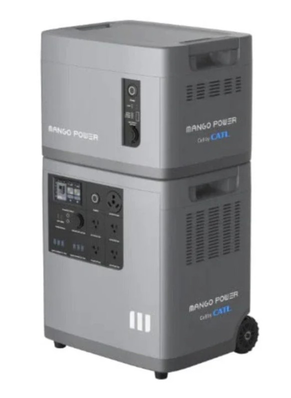 Key Features • Massive 8064Wh LiFePO4 Capacity – 2x Mango Power E (4032Wh) + 2x Expansion Batteries, expandable for multi-day whole-home backup. • Powerful 7200W Split-Phase Output – 120V/240V support with high surge capability, powers central AC, well pumps, dryers, and full kitchen setups. • mPanel Pro Smart Integration – Automatic transfer switch for critical circuits, subpanel support, and safe grid/battery switching. • Fast Charging – Supports high-wattage AC and solar input for quick recharges (solar panels sold separately). • Multiple Ports – AC outlets, USB-C (PD), USB-A, car port, RV outlets across units for versatile charging. • Smart App Control – Remote monitoring, scheduling, and energy optimization via Mango app. • Quiet & Safe – Low noise, advanced BMS with multiple protections, no fumes. • Durable & Portable – Rugged design with wheels/handles on each unit for mobility.