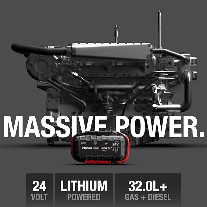 Pair this jump starter with our premium lithium-ion batteries for a fleet-essential emergency power system. For commercial operators, heavy haulers, and industrial pros, the NOCO GB251+ provides unmatched 24V power and protection. Order now and harness Boost MAX superiority—stocked and ready to ship from lithiumion-batteries.com!