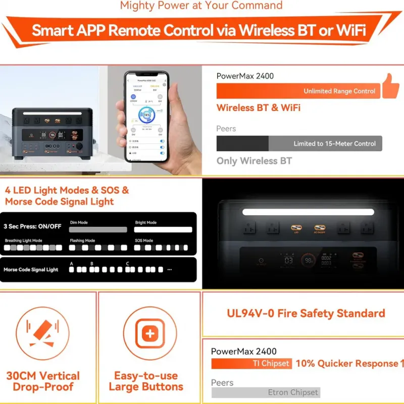 Product Description for Oscal PowerMax 2400 Portable Power Station + 1 x 200W Portable Solar Panel Bundle