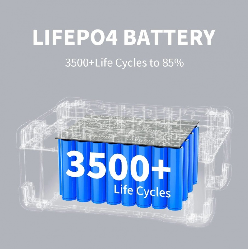 Specifications at a Glance Capacity: 3072Wh • Battery Type: LiFePO4 • Voltage: 24V nominal • Cycle Life: 3500+ at 80% DOD • Compatibility: E2000LFP ONLY • Dimensions: ~17.7 × 12.0 × 10.0 in • Weight: ~66 lbs • Operating Temp: Charge 32–113°F / Discharge -4–113°F • Warranty: Manufacturer warranty