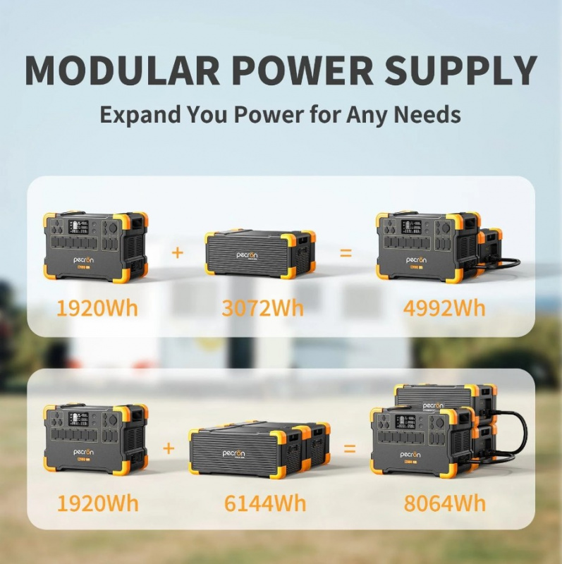 Key Features • 3072Wh LiFePO4 Capacity – Adds massive storage to your E2000LFP system for longer runtime. • Long-Lasting Performance – 3500+ cycles at 80% DOD with advanced BMS for safety and durability. • Plug-and-Play Design – Simple connection with included cable, auto-recognized by the main unit. • Fast Charging Compatibility – Supports the same fast charging as the main station (up to 800W solar input when paired). • Smart Monitoring – Battery status visible via main unit display and PECRON app. • Safe & Reliable – Built-in protections against overcharge, over-discharge, short circuit, and temperature extremes. • Compact & Stackable – Easy to add and transport alongside the main unit.