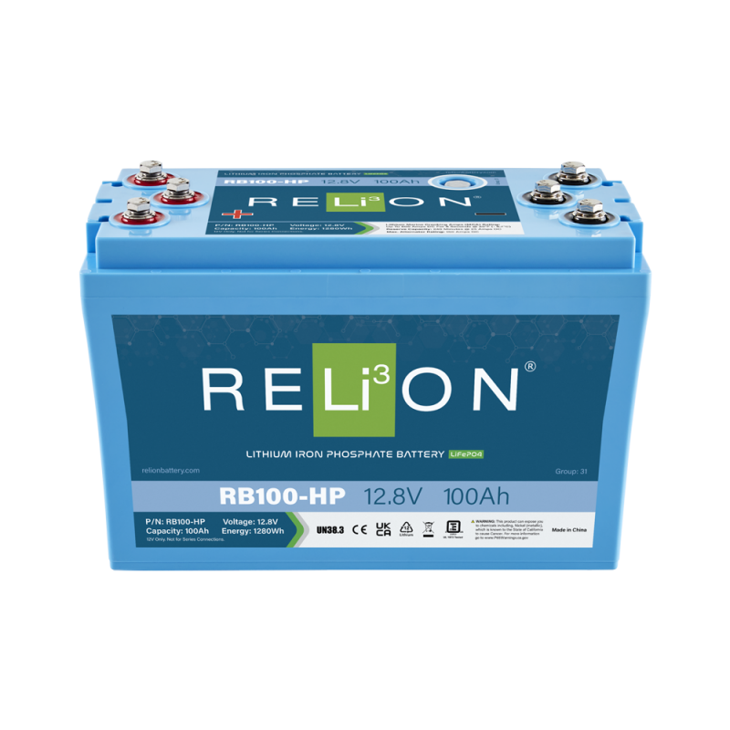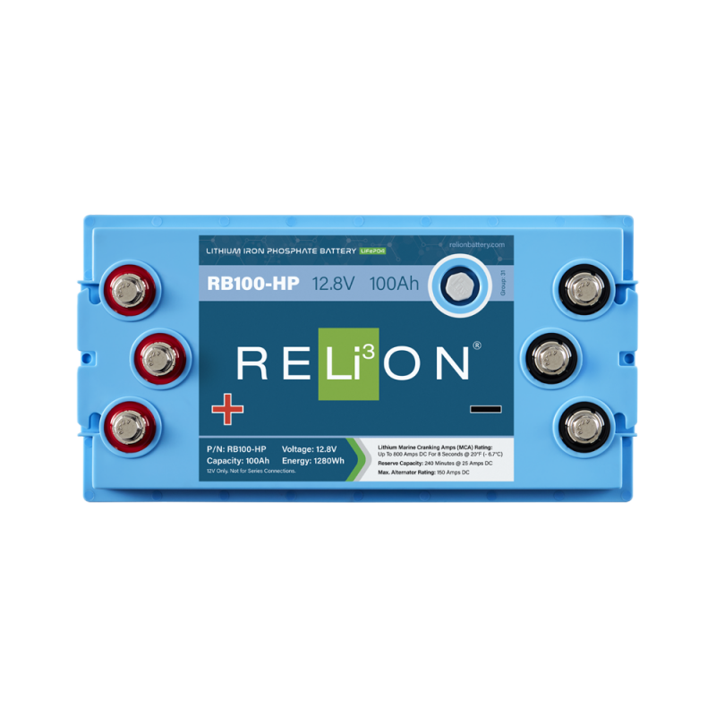 RELiON RB100-HP 12V 100Ah LiFePO4 Dual-Purpose Deep Cycle Starting Lithium Battery – High-Peak Power Solution for Marine, Solar, RV, and Off-Grid Systems