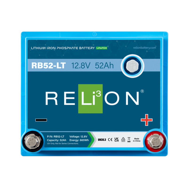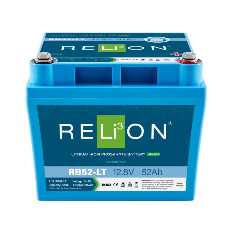 RELiON RB52-LT 12V 52Ah LiFePO4 Cold Weather Deep Cycle Lithium Battery – Extreme Temperature Power Solution for Marine, Solar, RV, and Off-Grid Systems