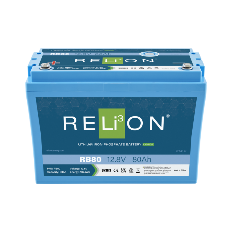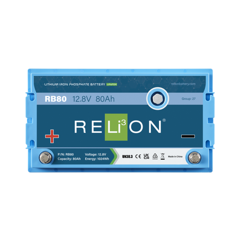 RELiON RB80 12V 80Ah LiFePO4 Deep Cycle Lithium Battery – High-Capacity Group 27 Power Solution for Marine, Solar, RV, and Off-Grid Systems