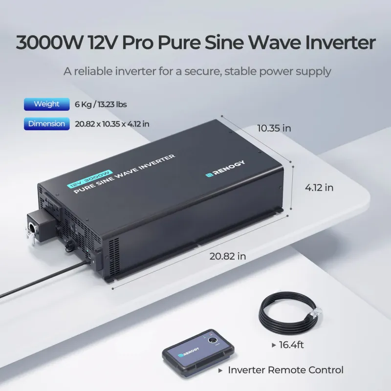 Product Description for Renogy 3000W 12V Pro Pure Sine Wave Inverter with EcoSleep Mode