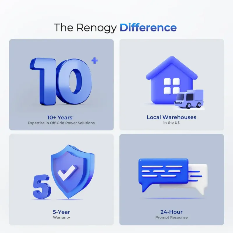 Pair this kit with our premium inverters or expansion batteries for a full off-grid ecosystem. Whether illuminating your workshop, securing your shed, or powering RV essentials, the Renogy 400W Complete Kit with 3.6kWh LiFePO4 delivers unmatched efficiency, safety, and simplicity. Order now and harness the sun's power—stocked and ready to ship from lithiumion-batteries.com!
