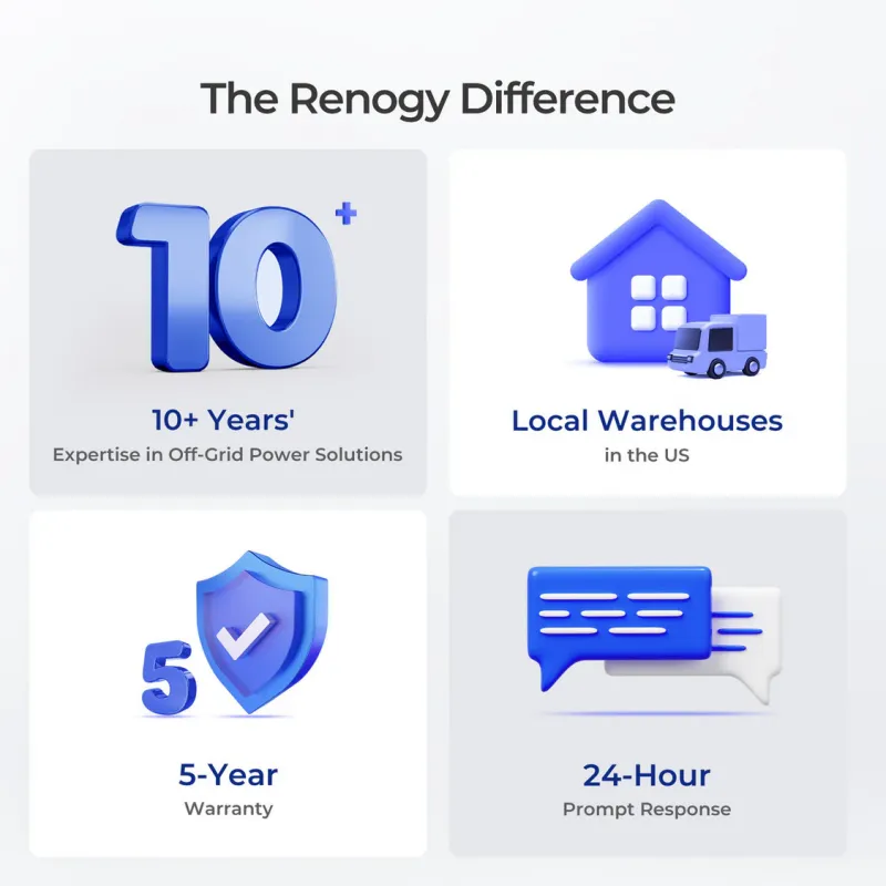 - Bluetooth Monitoring: Connect via Renogy DC Home App for instant access to battery stats, customizable alerts, and firmware updates on iOS/Android devices.