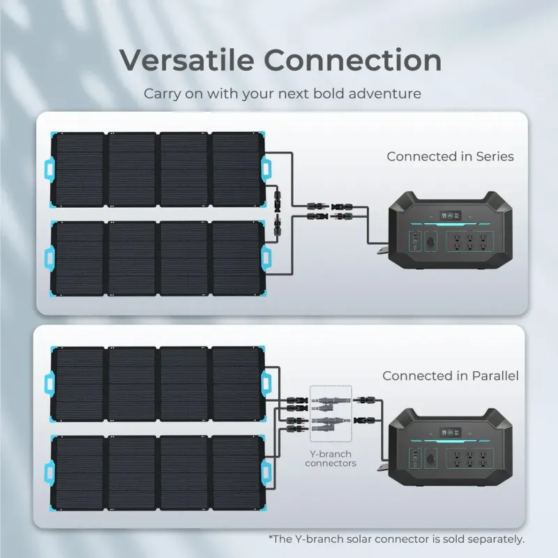 - Easy Setup & Versatility: Adjustable aluminum kickstands for optimal tilt; built-in carrying handle and protective canvas bag; parallel/series compatible for system expansion.