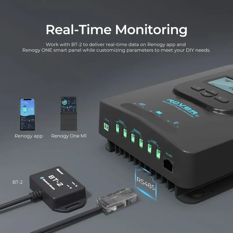 - Bluetooth Monitoring: BT-2 module connects to the Renogy DC Home App for remote viewing of voltage, current, and system status on iOS/Android devices.