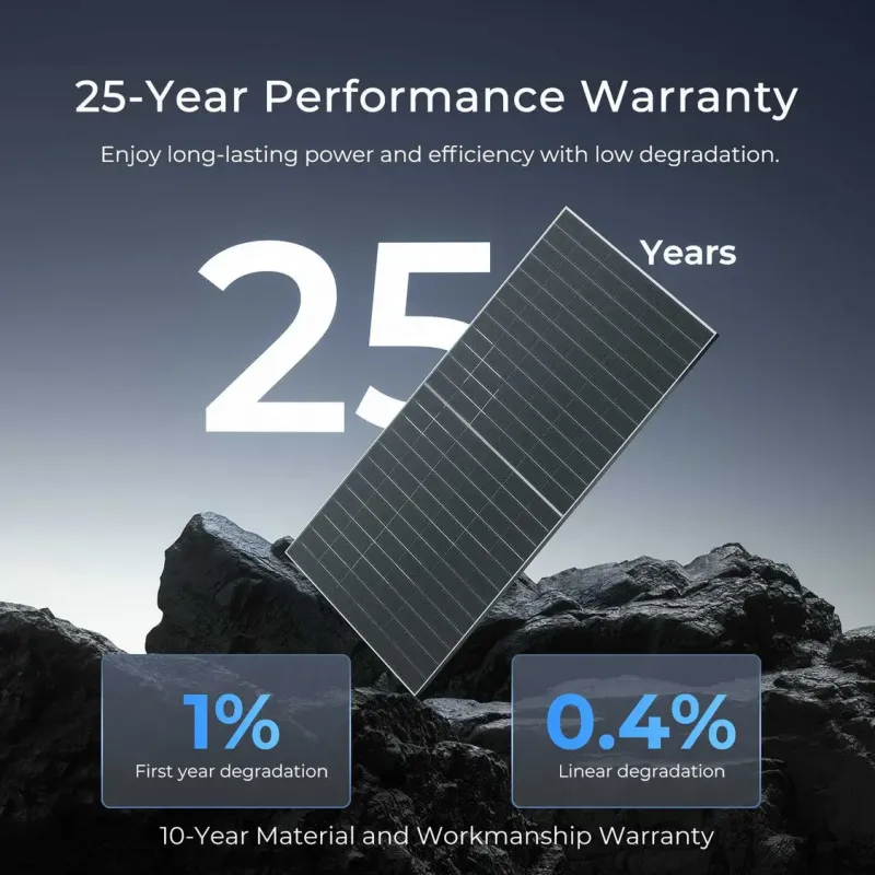 • Exceptional Longevity: 30-year linear power output warranty (80% output guaranteed), 12-year product warranty for peace of mind and sustained performance.