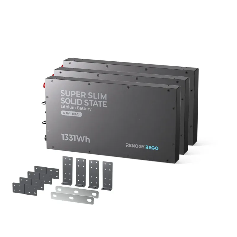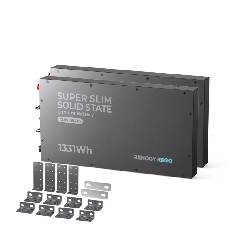 Renogy REGO 12V 104Ah Super Slim Solid State LiFePO4 Deep Cycle Lithium Battery – Ultra-Thin High-Capacity Power Solution for Marine, Solar, RV, and Off-Grid Systems
