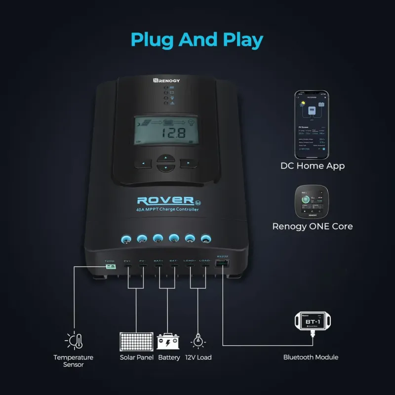 Renogy Rover Li 40 Amp MPPT Solar Charge Controller with Renogy ONE Core Bundle