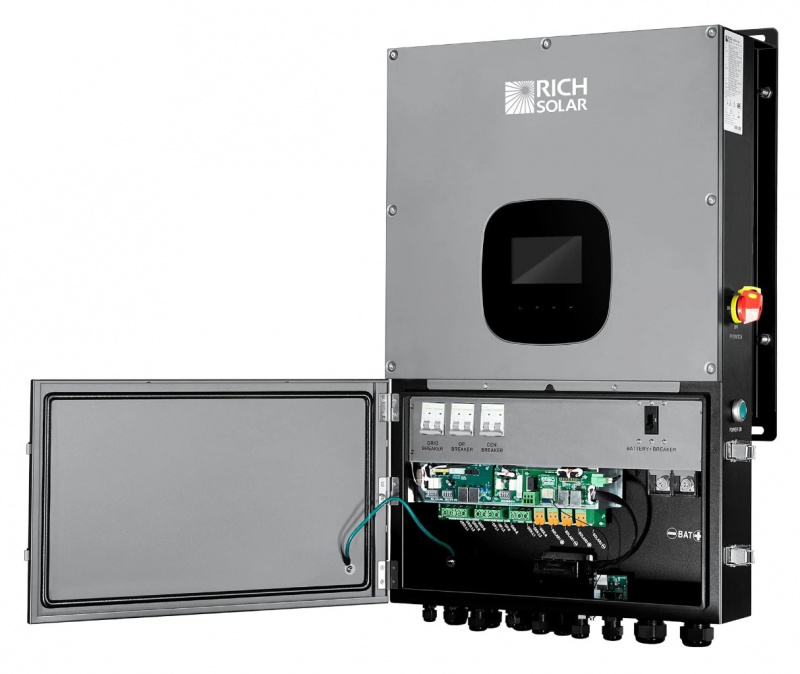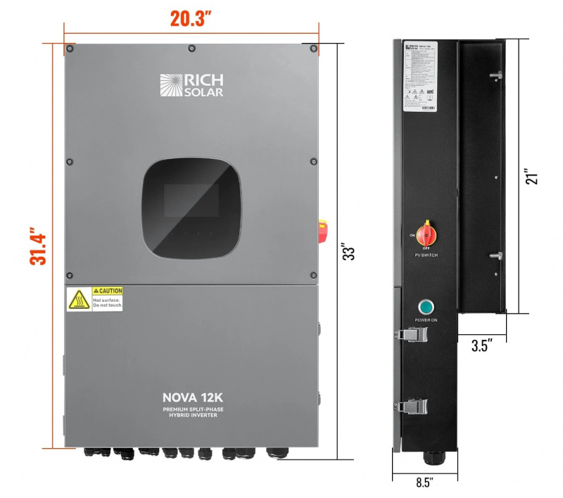 The RICH SOLAR NOVA 12KPV is a premium, UL-certified all-in-one hybrid solar inverter designed for residential, agricultural, cabin, ADU, tiny home, and off-grid applications. With massive 12000W PV input and 10000W split-phase output, it delivers reliable power for whole-home backup, large off-grid systems, or grid-tie with battery storage.