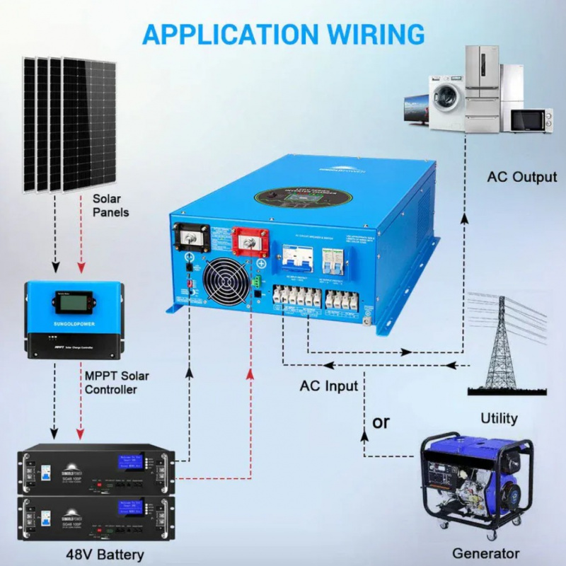 Product Description for Sungold Power 12000W 48V Split Phase Pure Sine Wave Inverter Charger 12000W/36000W Peak