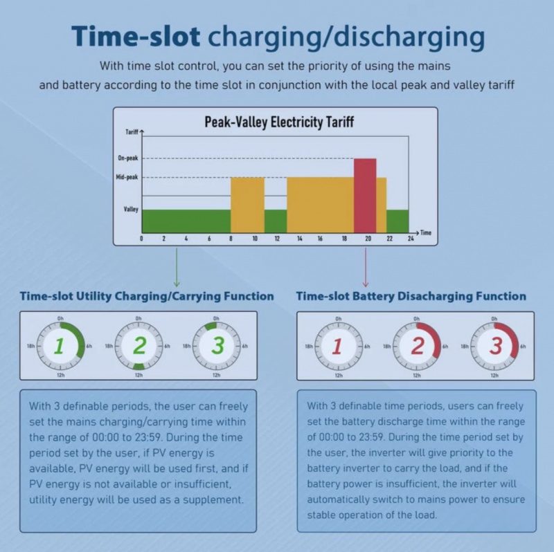Specifications at a Glance Output Power: 20000W continuous / high surge (parallel) • Voltage: 48VDC input, 120/240V AC split-phase output • PV Input: High-capacity MPPT per unit • Charger: Integrated high-current • Efficiency: >95% • Dimensions: ~24.0 × 16.0 × 10.0 in per unit • Weight: ~80 lbs per unit • Operating Temp: Wide range with protections • Warranty: Manufacturer warranty