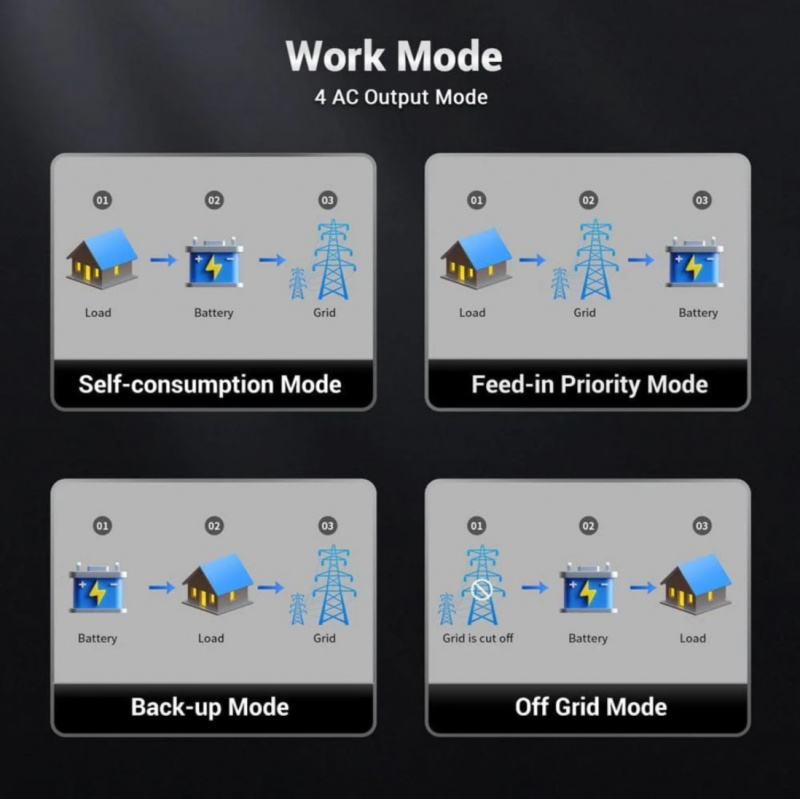 Key Features • 22.8kW Combined Continuous Output – 2x 11.4kW units in parallel for true 120V/240V split-phase with high surge capability. • High Solar Input – Supports large PV arrays with dual MPPTs per unit for maximum renewable energy harvest. • Hybrid Functionality – Works off-grid, grid-tie, or as backup with automatic transfer switch. • 48V Battery Input – Compatible with lithium (LiFePO4), AGM, gel, or flooded batteries. • Built-in Protections – Overload, over-temperature, short-circuit, low-battery, and reverse polarity safeguards. • Advanced Monitoring – LCD display and optional app/Wi-Fi for real-time system status and parallel operation. • Parallel Capable – Stack multiple units for increased power output (this kit is pre-configured for 2 units). • Rugged & Reliable – Durable construction for indoor/outdoor use with cooling fans.