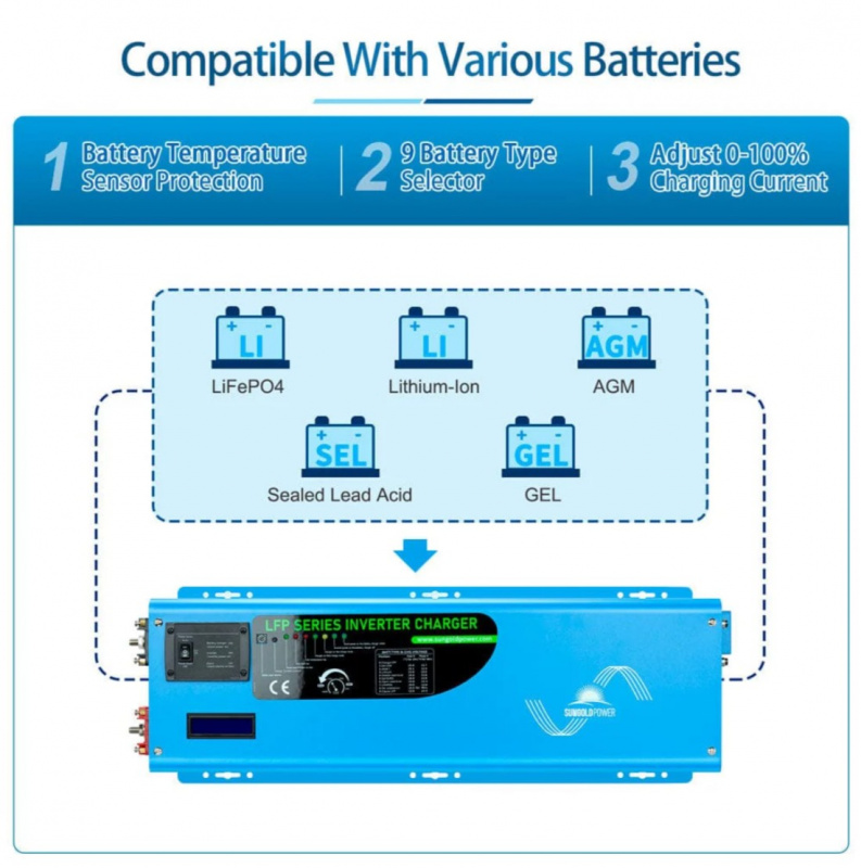 Whether for off-grid cabins, large RV power, marine applications, or reliable home backup, the Sungold Power 4000W 12V Inverter with Charger delivers robust, clean power on demand. Order now — stocked and ready to ship from lithiumion-batteries.com!