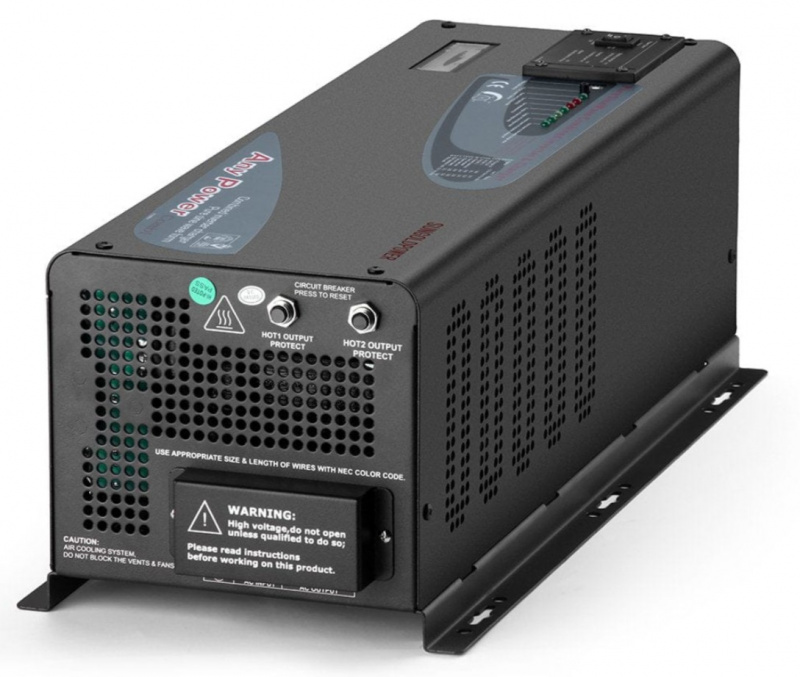 Specifications at a Glance Inverter Output: 4000W continuous / 12000W peak • Voltage: 12VDC input, 120/240V AC split-phase output • Charger: Integrated high-current • Battery Capacity: 4800Wh (2x 12V 200Ah LiFePO4) • Waveform: Pure sine wave • Efficiency: >90% • Dimensions: Inverter ~20.0 × 15.0 × 8.0 in • Batteries ~20.5 × 9.4 × 8.7 in each • Weight: ~60 lbs (inverter) + ~120 lbs (batteries) • Operating Temp: Wide range with protections • Warranty: Manufacturer warranty