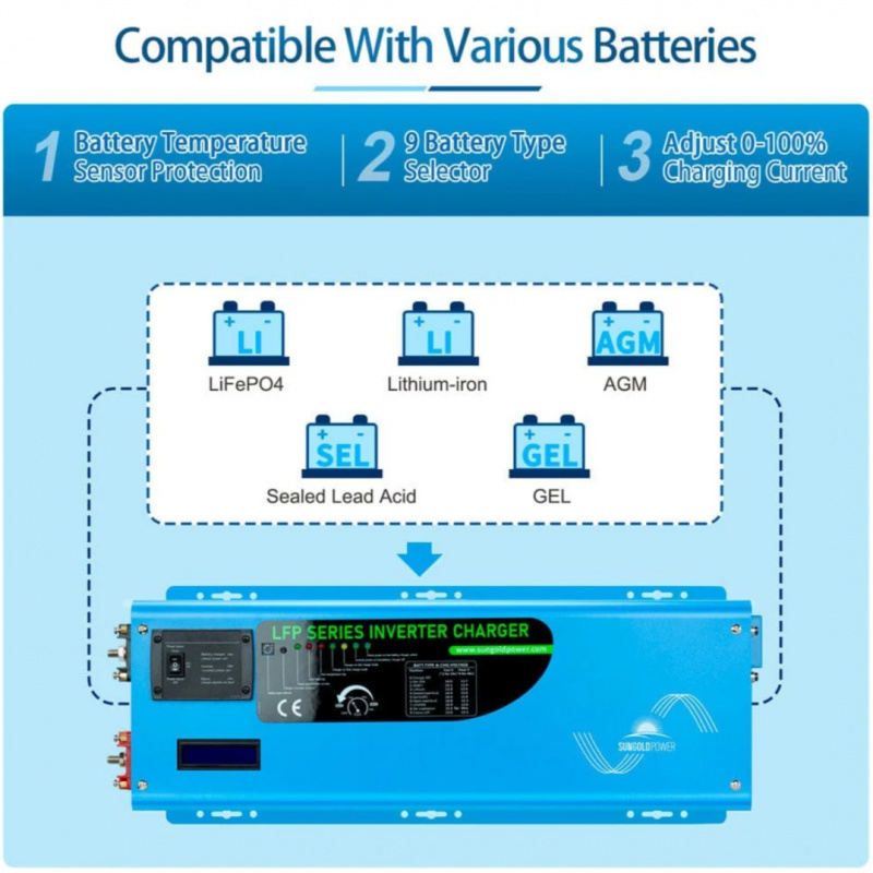 Whether for off-grid cabins, large RV power, marine applications, or reliable home backup, the Sungold Power 4000W 24V Inverter with Charger delivers robust, clean power on demand. Order now — stocked and ready to ship from lithiumion-batteries.com!