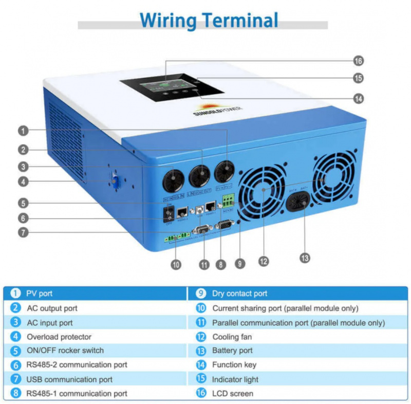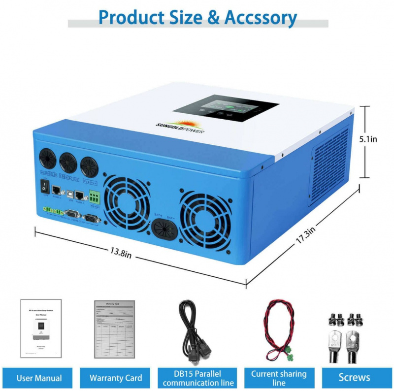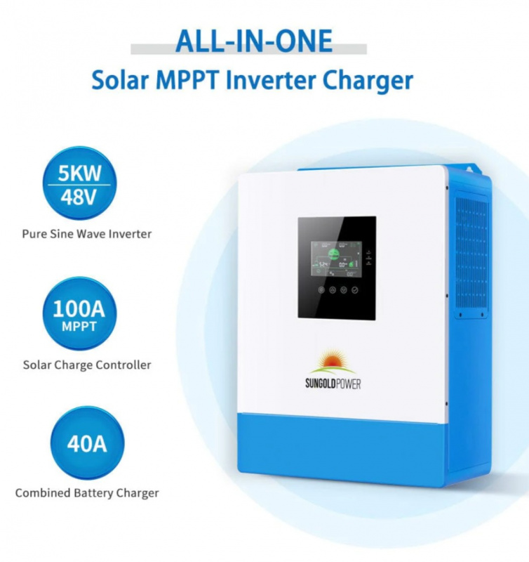 Product Description for Sungold Power 5000W 48V Solar Charger Inverter SPH504880A 80A MPPT + SG48100P 5.12kWh Battery Bundle